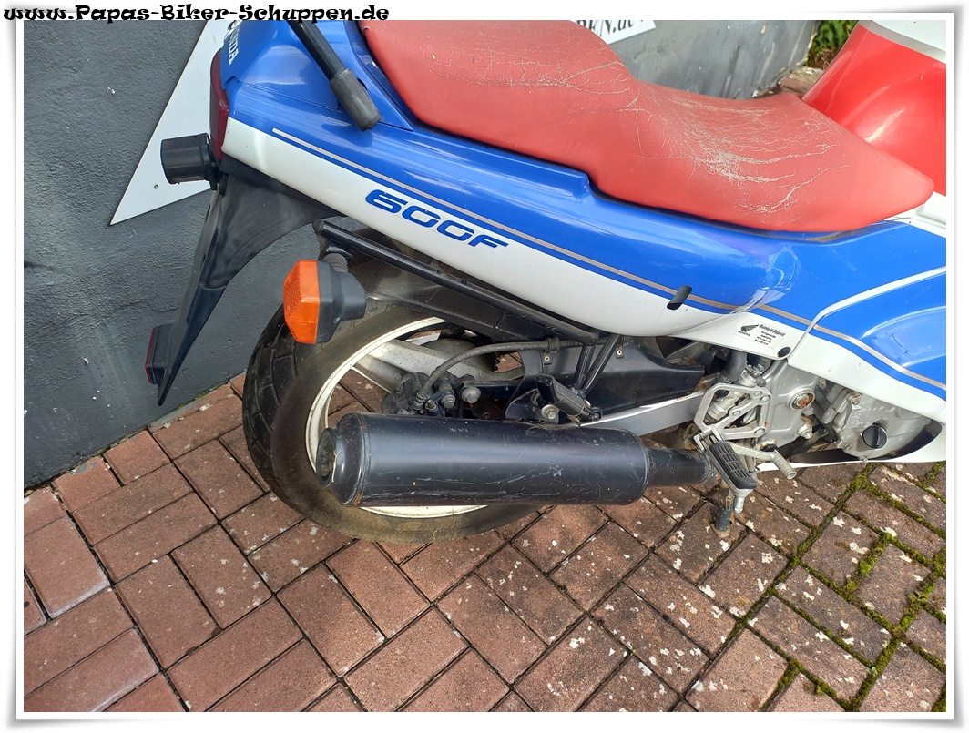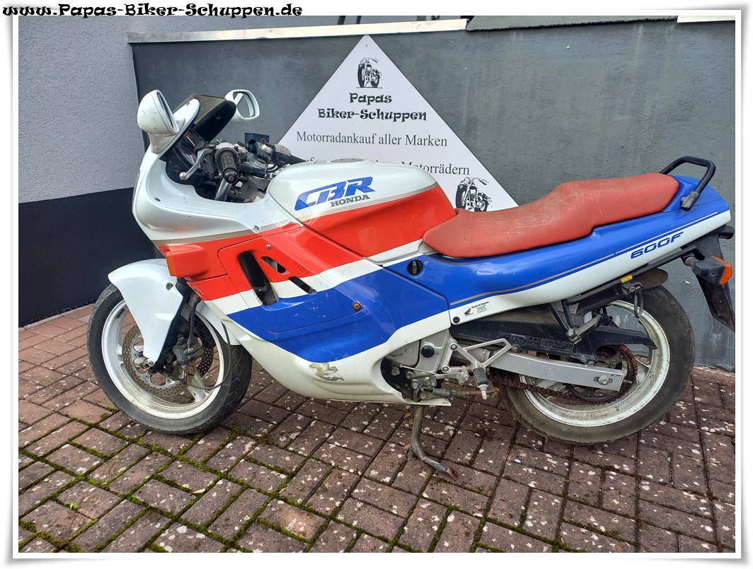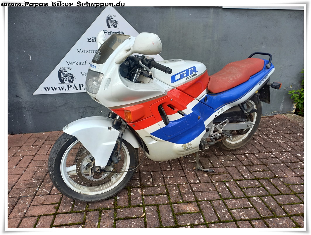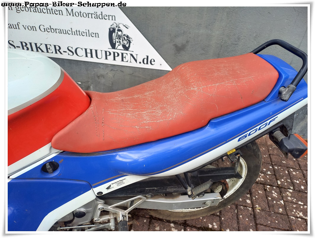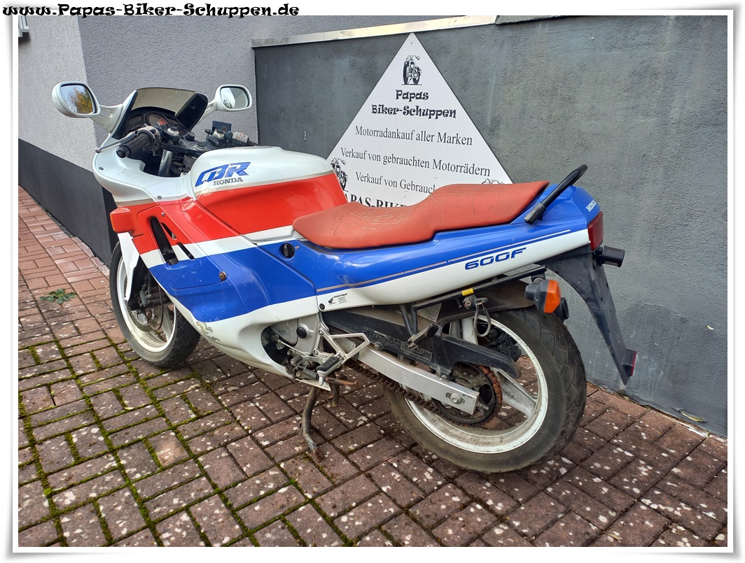 EZ. 1990, 68 KW / 92 PS, 29280 km, diese CBR600 ist seit 2013 abgemeldet und somit müsste einiges gemacht werden. Die Kette ist rostig, die Reifen sollten wegen dem Alter gewechselt werden, die Sitzbank wird langsam porös, die Vergaseranlage müsste gereinigt werden, Gabelsimmerringe sollten erneuert werden und eine neue Batterie ist natürlich auch fällig. Sonnst befindet sich das Motorrad eigentlich in recht guten Originalzustand. Der Fahrzeugbrief ist nicht mehr auffindbar, der Fahrzeugschein ist aber vorhanden.