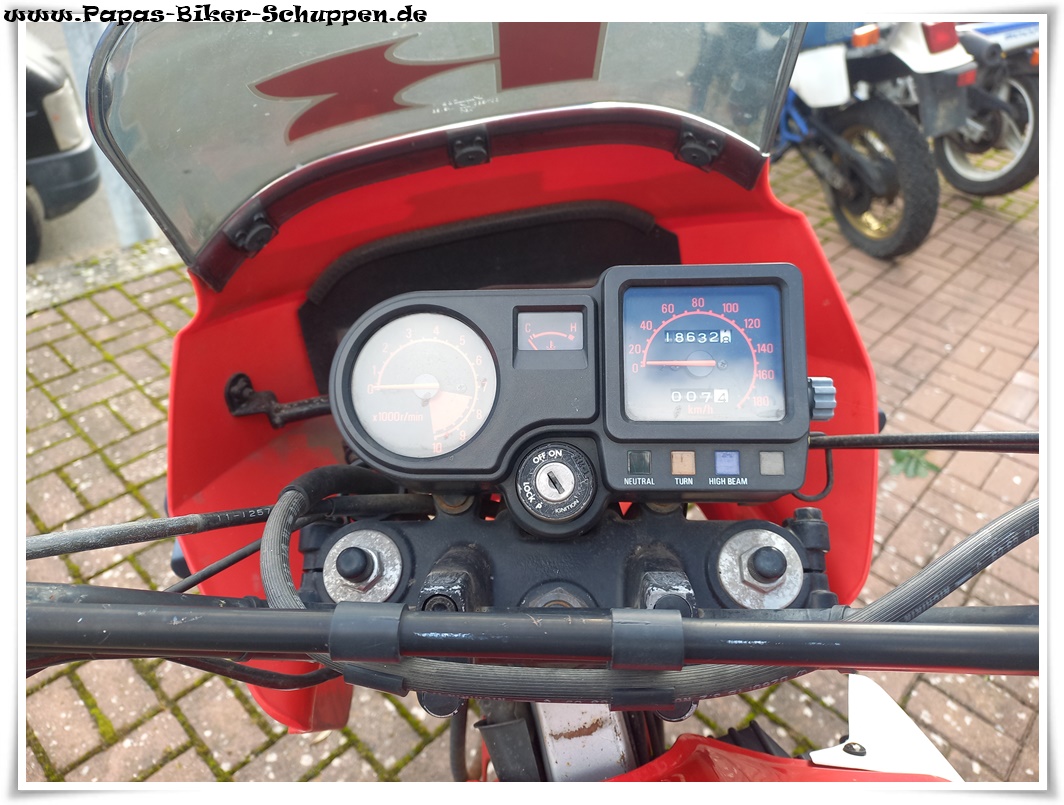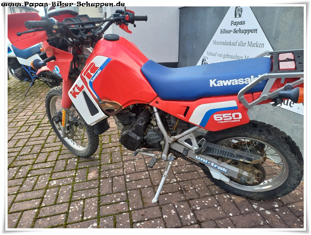 EZ. 1989, 18632 km, 20 KW / 27 PS oder 35 KW / 48 PS, diese KLR stand seit 2009 abgemeldet, sauber und trocken in einer Scheune und wurde jetzt wieder raus geholt. Das Motorrad läuft aber es muss trotzdem einiges gemacht werden. Das schlimmste und größte Problem ist auf jeden Fall der Tank, Der Tank ist leider komplett durchgerostet und absolut nicht mehr zu retten. Ich habe alles versucht aber habe bis jetzt leider keinen passenden und guten Tank bekommen. Deshalb biete ich das Motorrad jetzt so an wie es ist. Sonnst sollte wegen der langen Standzeit natürlich die üblichen Arbeiten wie Flüssigkeiten, Reifen usw. gemacht werden.