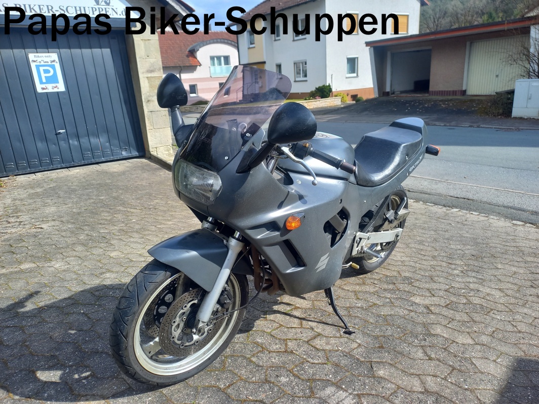 EZ. 1992, 86321 km, 72 KW / 98 PS, diese GSX750F ist zu 100% fahrbereit und absolut zuverlässig. Mit leicht abgeänderten Heck, niedrige Sitzbank und Stahlflex Bremsleitungen vorne und hinten. Sämtliche Verschleißteile sind noch in Ordnung und das Motorrad ist sofort und ohne Einschränkung fahrbereit. Ein super günstiges und zuverlässiges Alltags- oder Zweitmotorrad.