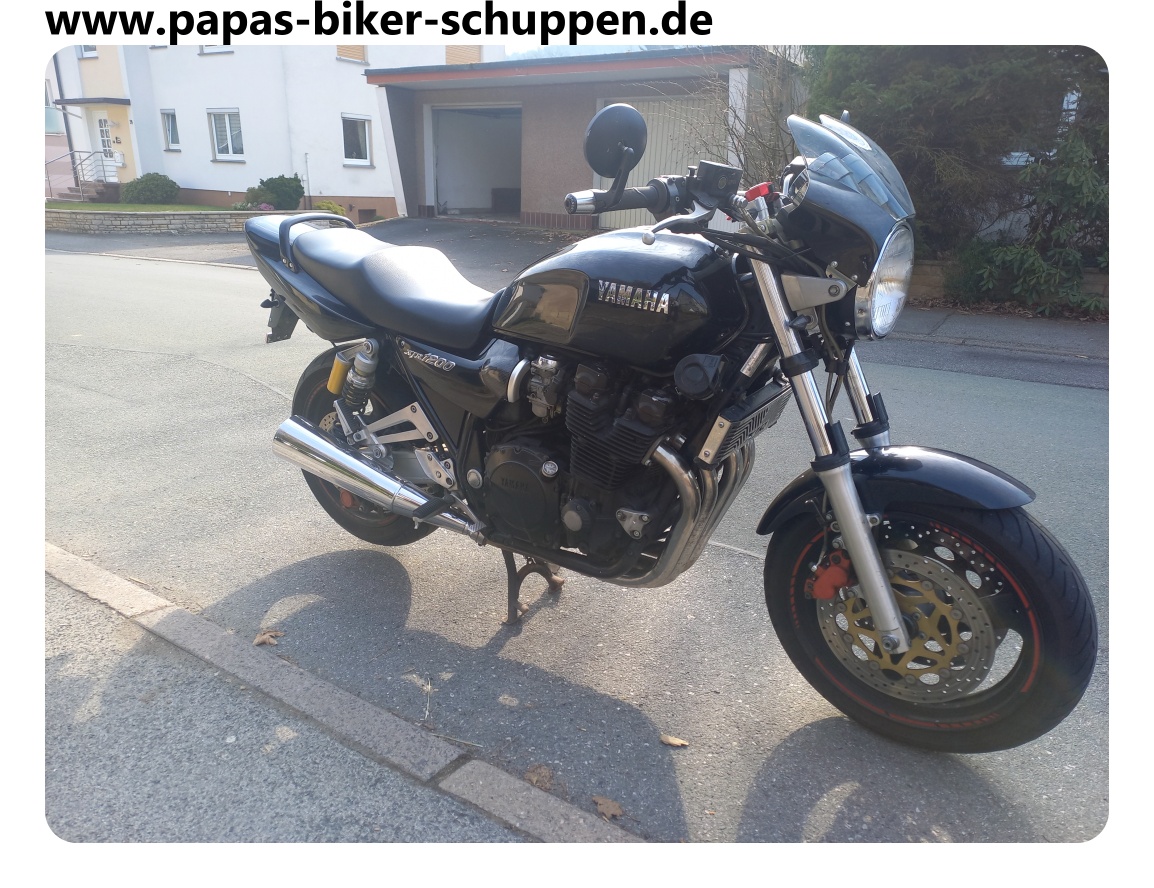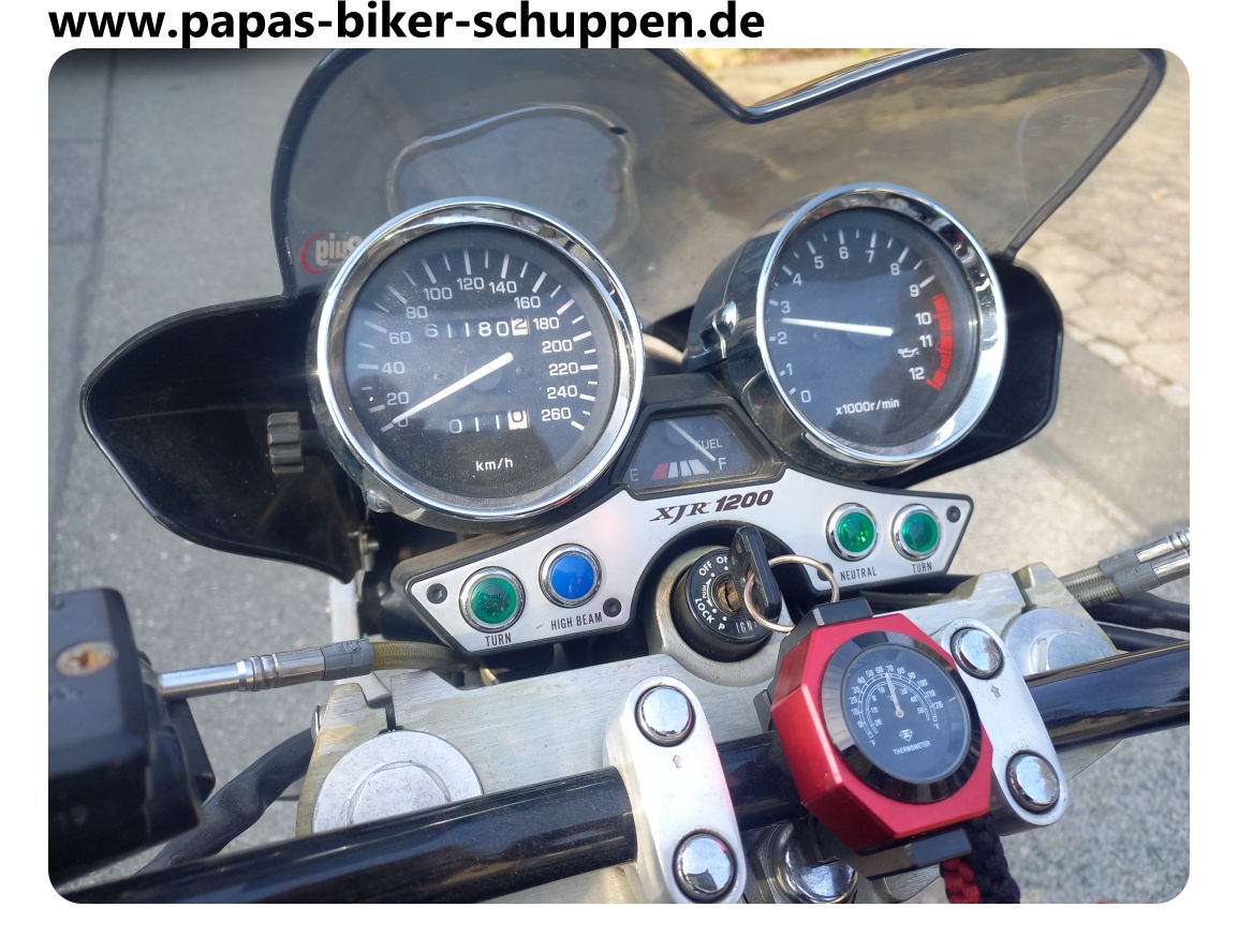 EZ. 1995, 61180 km, 72 KW / 98 PS, diese XJR hat 2 Vorbesitzer und befindet sich in recht guten Zustand mit leichten Gebrauchsspuren. Technisch ist die XJR absolut in Ordnung und sofort fahrbereit. Einziger Mängel der mir aufgefallen ist, ist eine etwas ölende Ventildeckeldichtung. Reifen, Kette, Bremsen und auch alle anderen Verschleißteile sind noch absolut in Ordnung. Zusätzlich ist eine kleine Scheibe, ein breiterer Lenker und Lenkerendenspiegel verbaut. Die Bremssättel wurden mal rot lackiert was aber schnell wieder geändert werden kann. Das Motorrad ist sofort startklar und absolut zuverlässig.